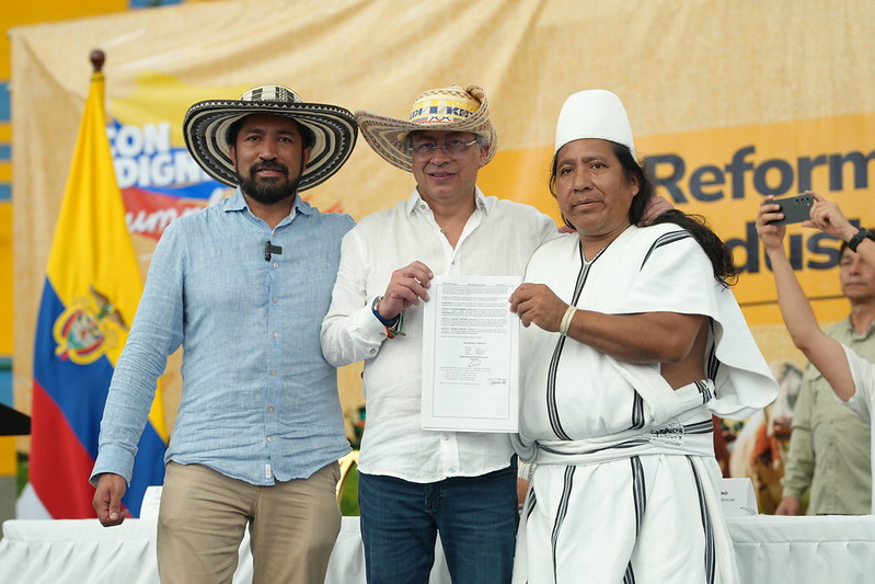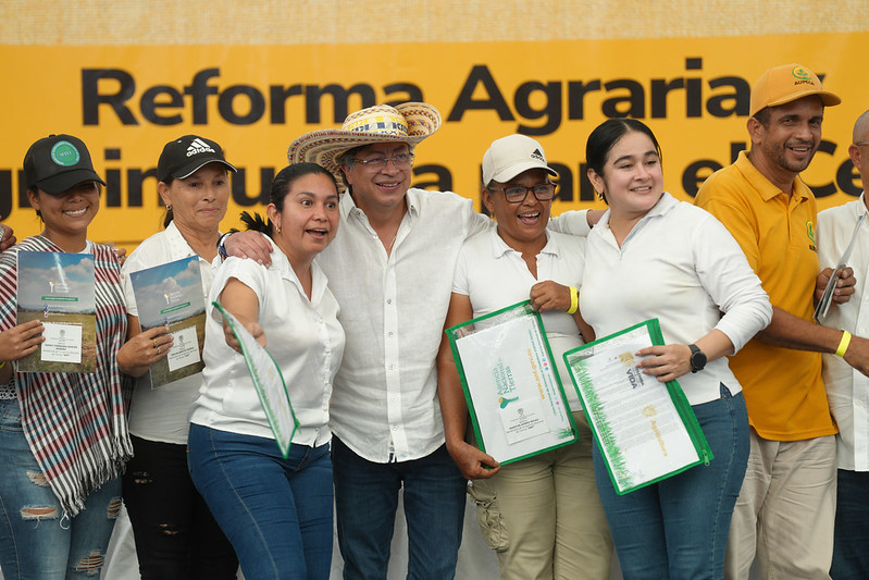 Este jueves, el presidente Gustavo Petro encabezó un evento histórico en el coliseo ‘Julio César Monsalvo’ de Valledupar, donde centenares de familias campesinas e indígenas del Cesar recibieron actas de entrega que los convierten en propietarios de tierra y beneficiarios de insumos y activos productivos para fortalecer sus proyectos agrícolas.