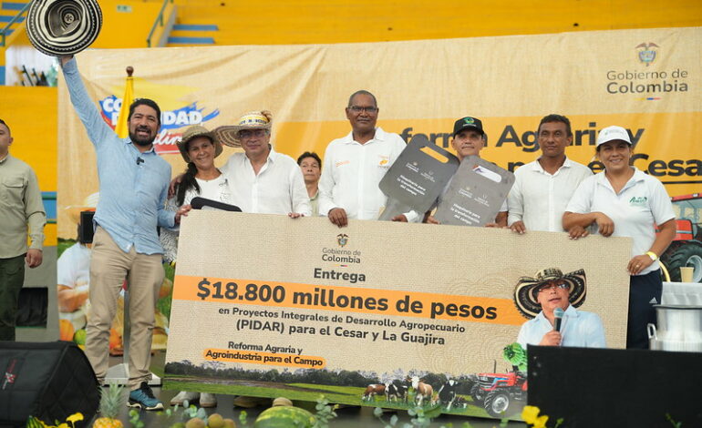 El pronunciamiento se realizó durante la entrega de 6.805 hectáreas de tierras compradas a particulares, beneficiando a 800 familias campesinas de los municipios de Astrea, Valledupar, Chimichagua, El Paso, Pailitas y Bosconia. Además, se entregaron activos productivos por más de 18.800 millones de pesos a cerca de 1.500 productores del Cesar y La Guajira, en maquinaria agrícola, semovientes, insumos, equipos y herramientas, con el objetivo de fortalecer las capacidades productivas y comerciales de familias campesinas e indígenas.